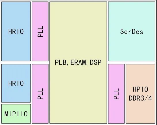 PH1A90和PH1A180系列器件IO支持豐富的電平標準,其中HRIO支持1.5~3.3V電平,支持熱插拔,HPIO支持1.2~1.8V電平,同時還是支持DDR3、DDR4 SDRAM。專用的MIPIIO支持MIPI電平標準,接收線速率最高達到2.5Gbps,最高支持8Lane輸入。PH1A90和PH1A180系列器件內置了最高8Lane的高速SerDes,線速率最高達到12.5Gbps,滿足用戶在高速串行收發應用中的需求。